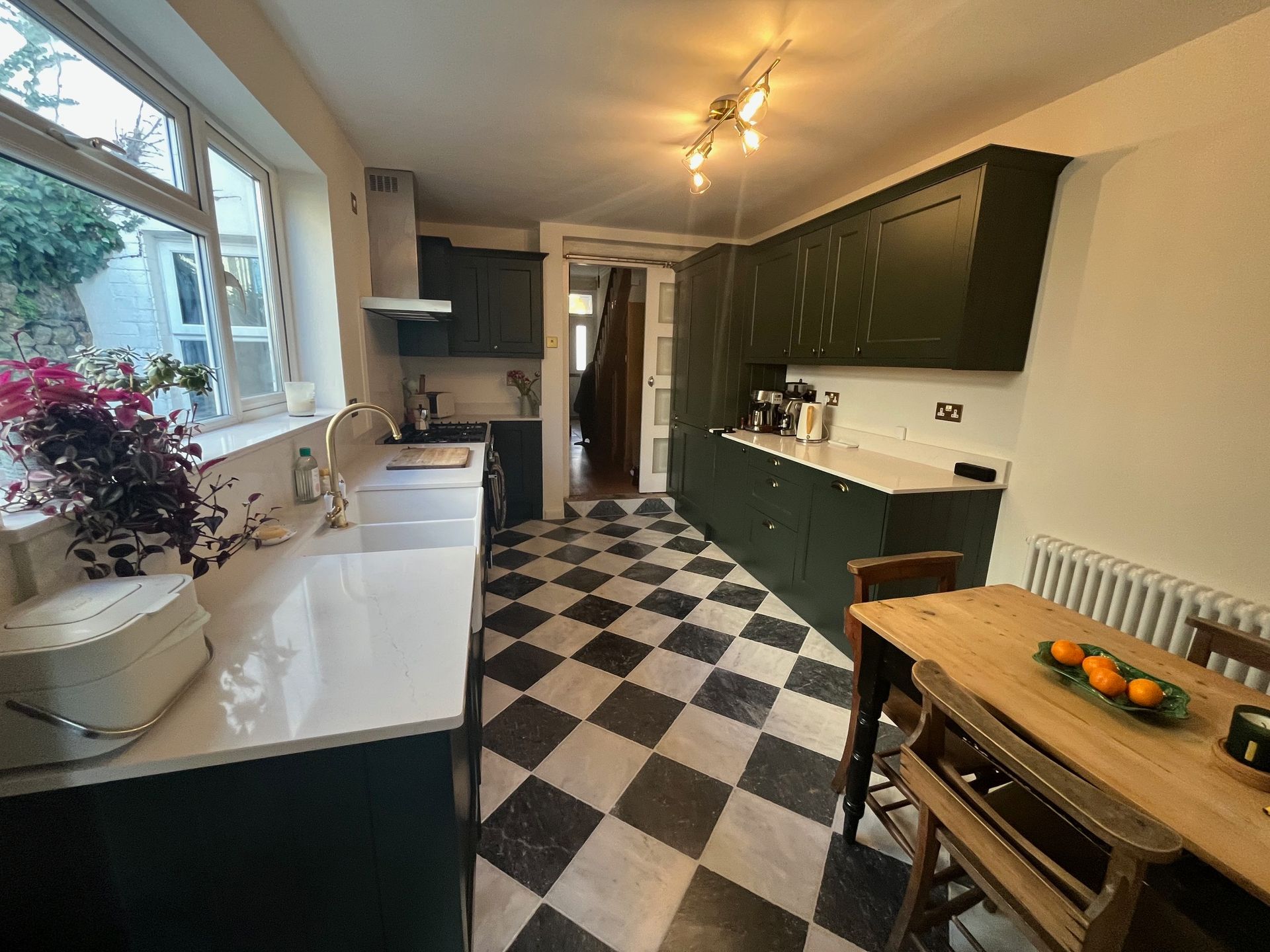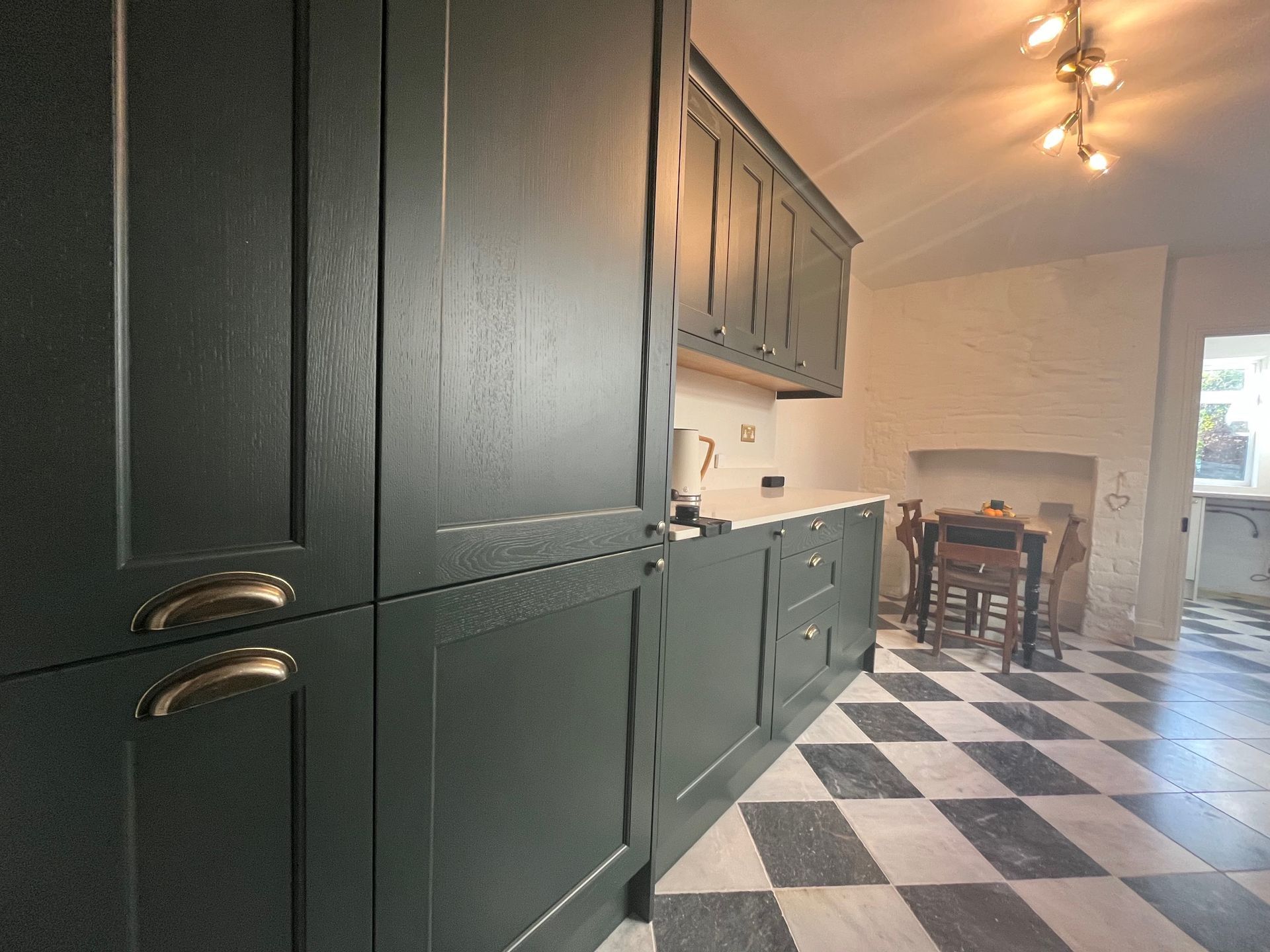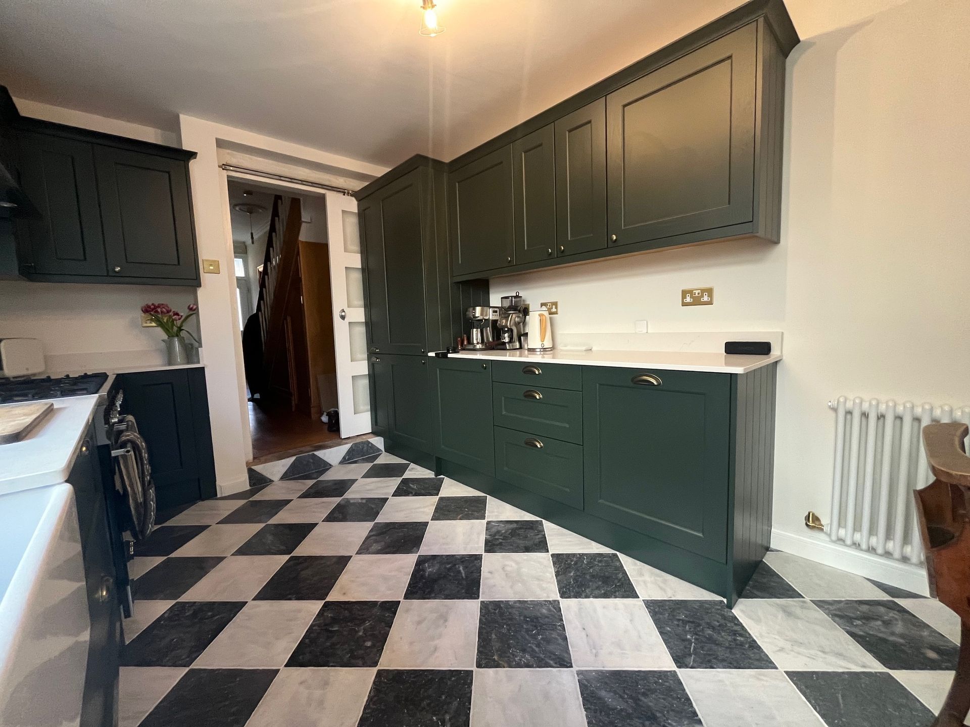 Kitchen refurbishment completed in Splott, Cardiff. This project involved the full removal of the existing kitchen and flooring, followed by the installation of a brand-new kitchen. Works included tiled flooring, wall plastering, painting and decoration, full electrical and plumbing upgrades, underfloor heating installation, and completion of all central heating works.