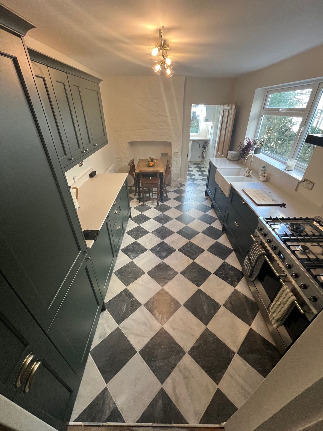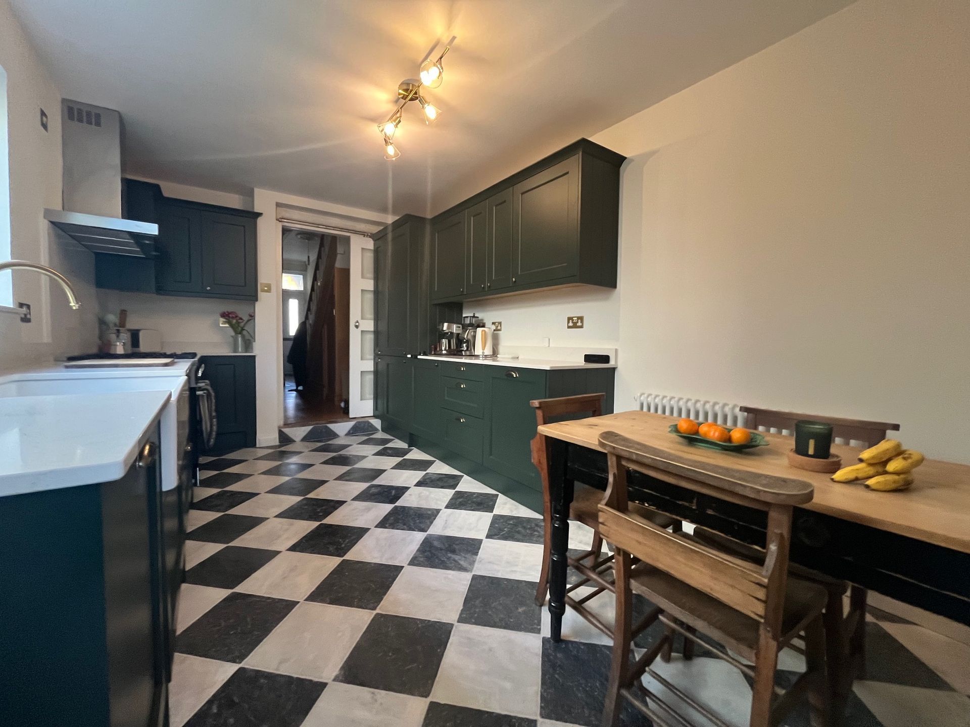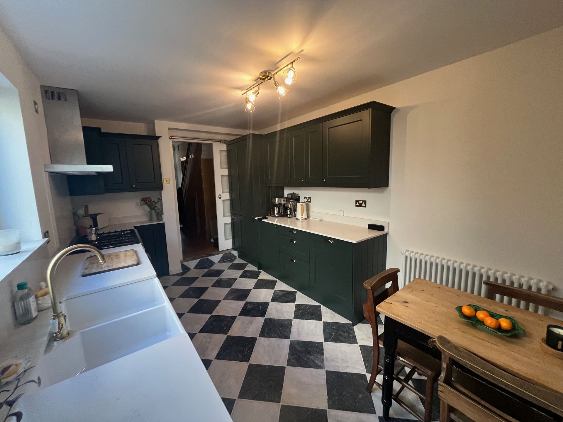 Kitchen refurbishment completed in Splott, Cardiff. This project involved the full removal of the existing kitchen and flooring, followed by the installation of a brand-new kitchen. Works included tiled flooring, wall plastering, painting and decoration, full electrical and plumbing upgrades, underfloor heating installation, and completion of all central heating works.