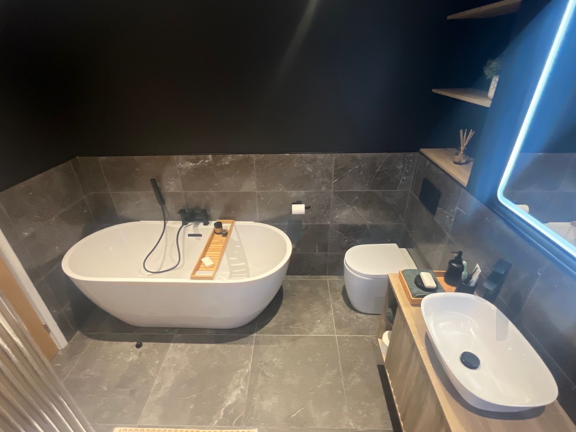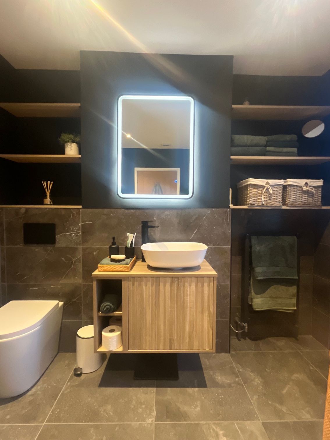 All electrical work was carried out safely and to current regulations, and all waste and rubbish were responsibly removed upon completion. The bathroom was expertly designed by our sister company, Cardiff Kitchen & Bathroom Store, resulting in a beautifully designed and fully functional bathroom renovation in the Vale of Glamorgan.